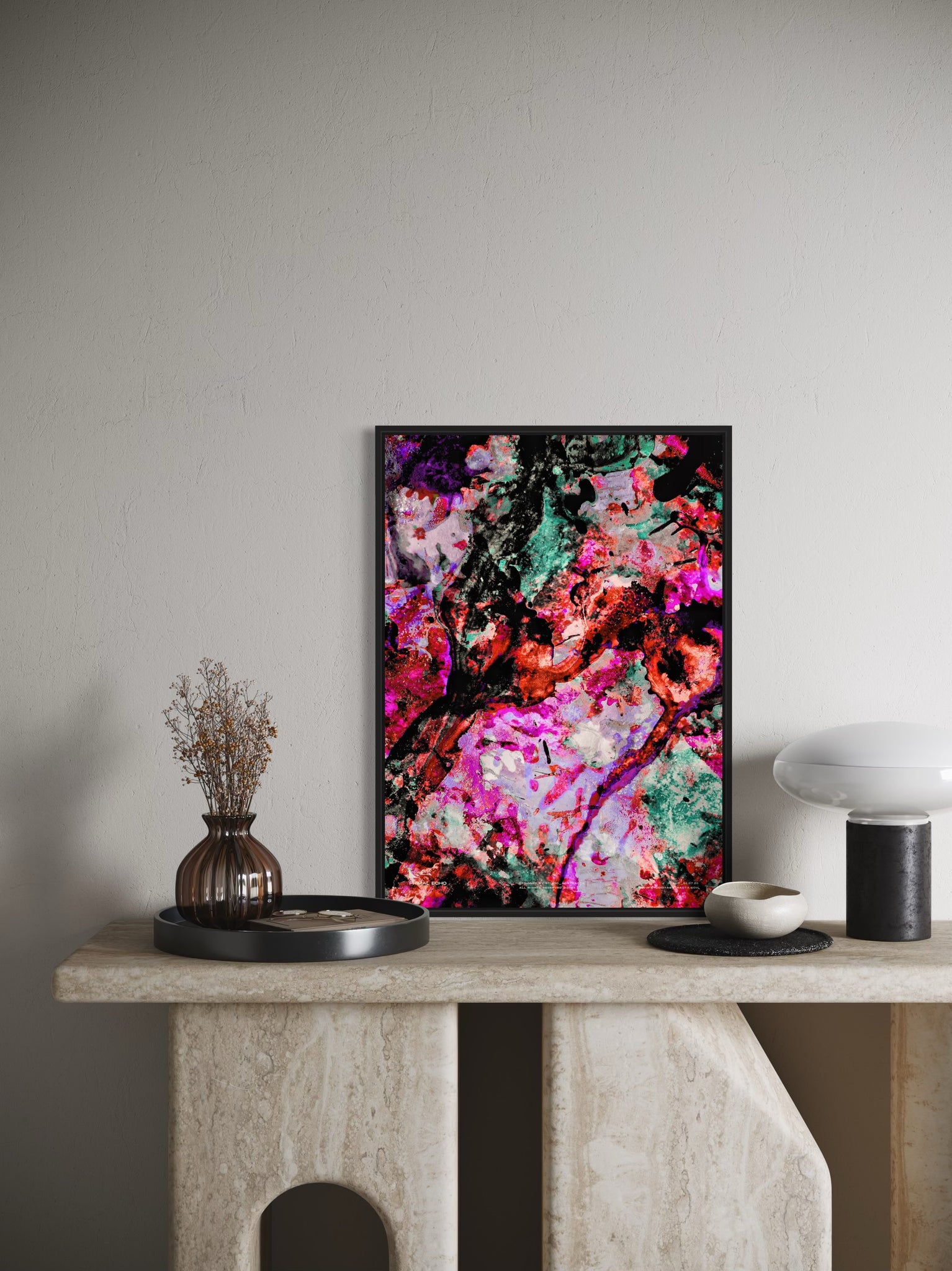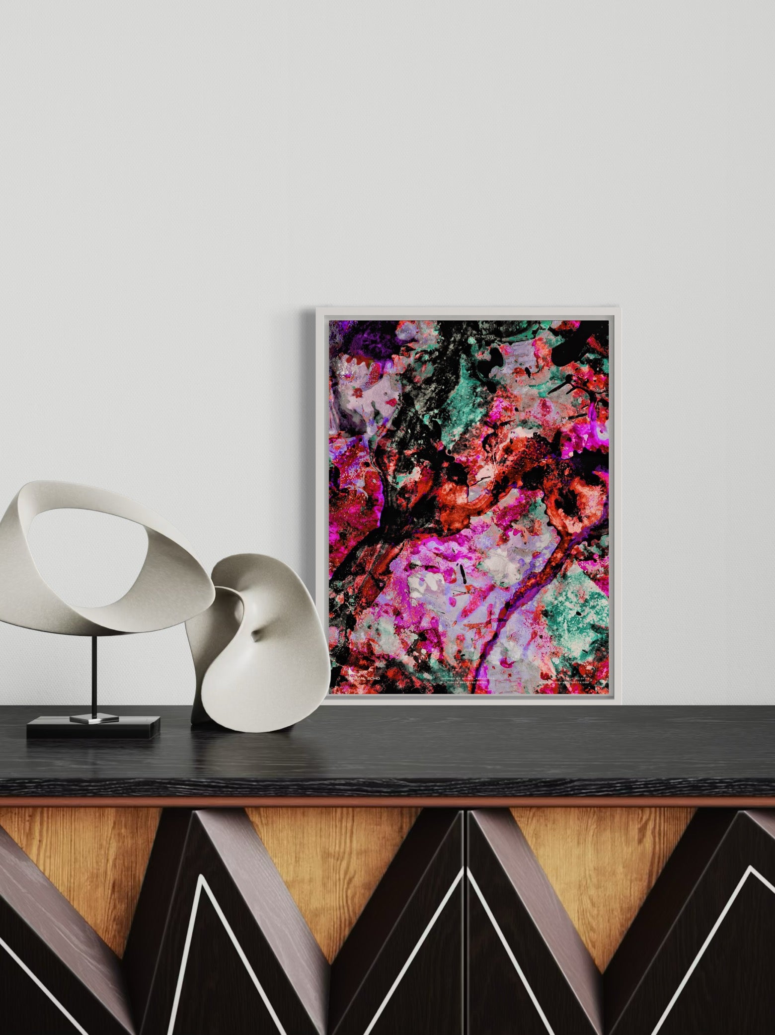 From the ground up, Primal Echo translates a raw murmur into momentum. Layers, fractures and speckled traces read like sediments of time, where memory fuses with present charge. Between erosion and renewal a living topology unfolds, guiding the eye across tectonic maps and inner terrains. The work concentrates primal forces into an incisive, lyrical resonance.