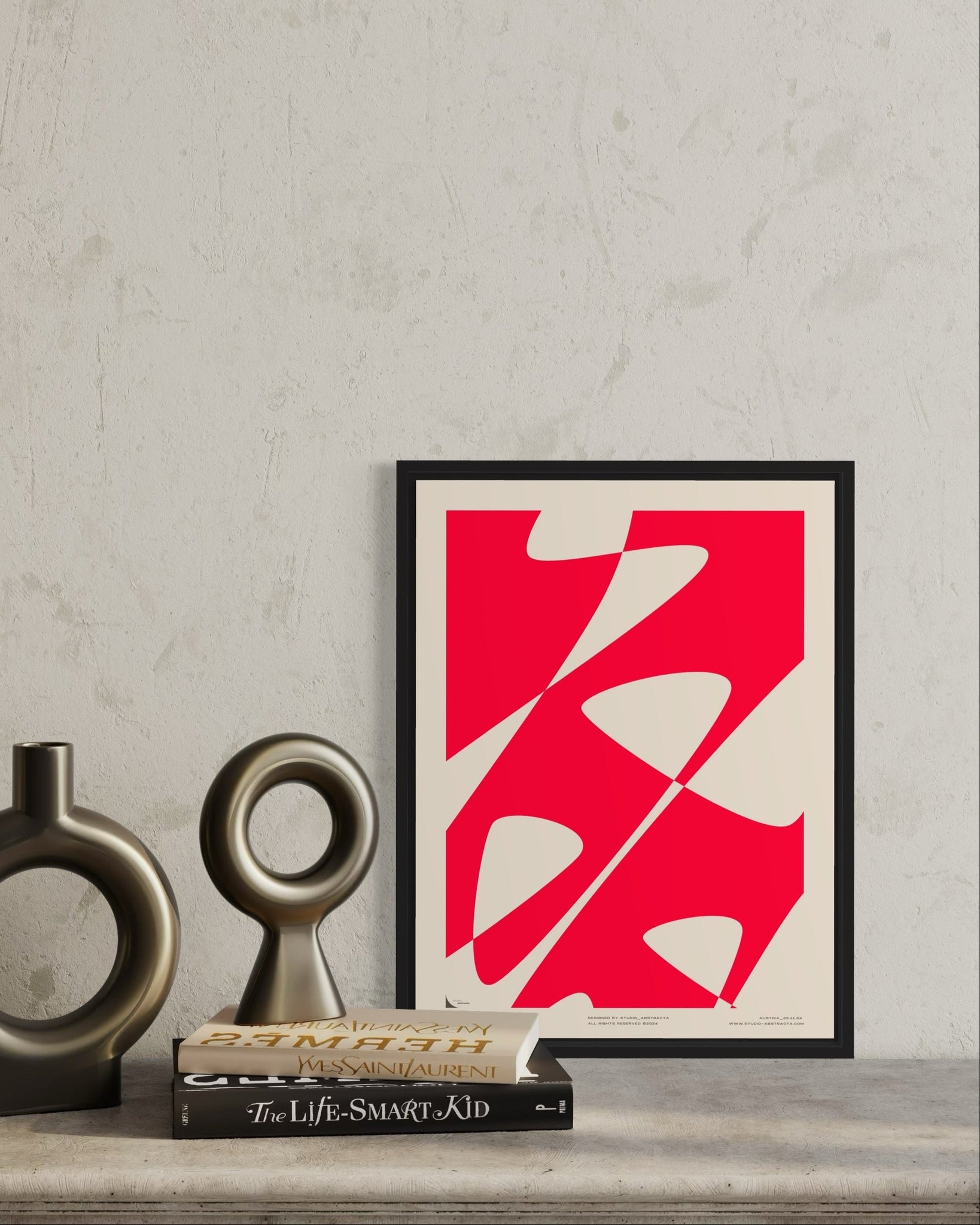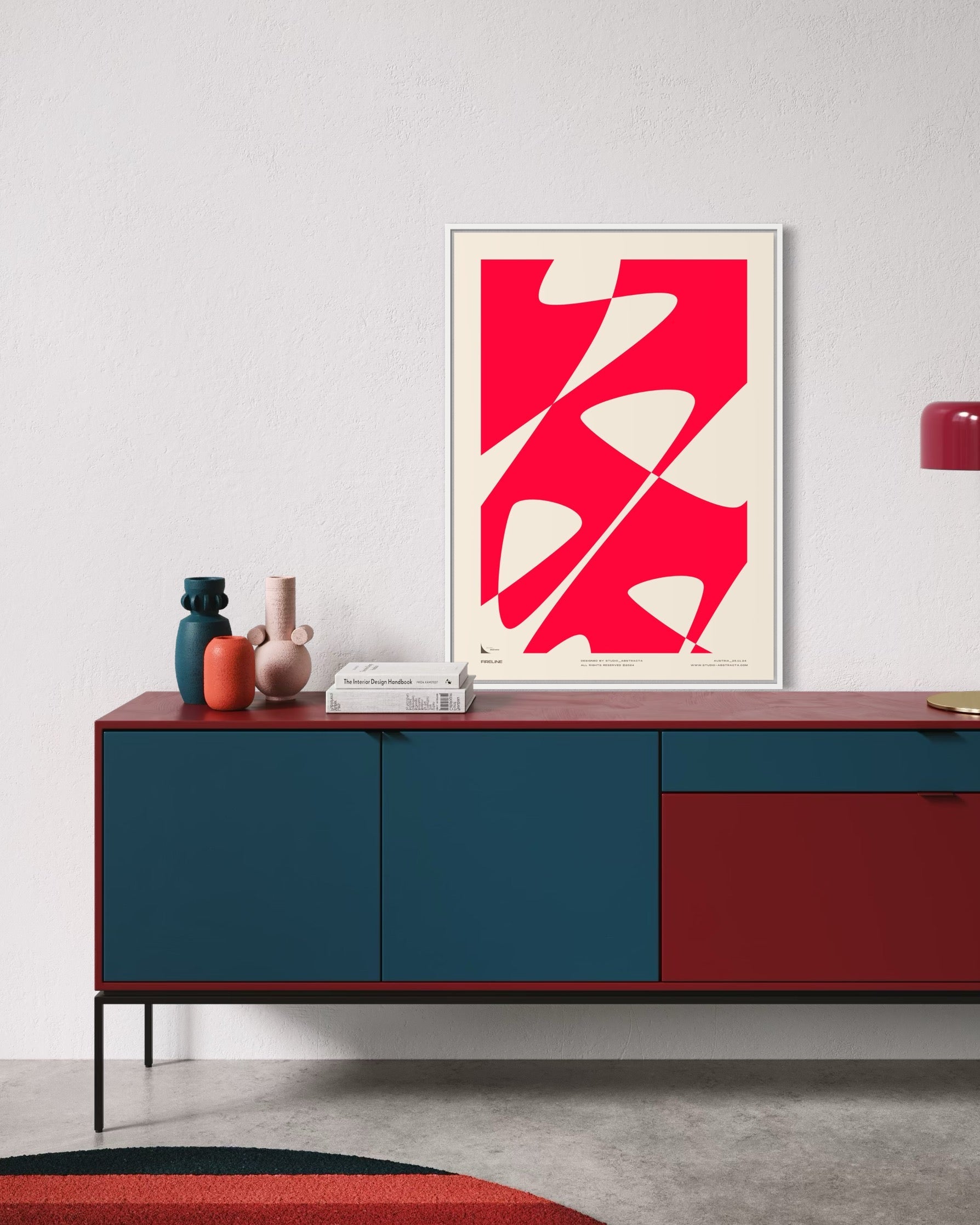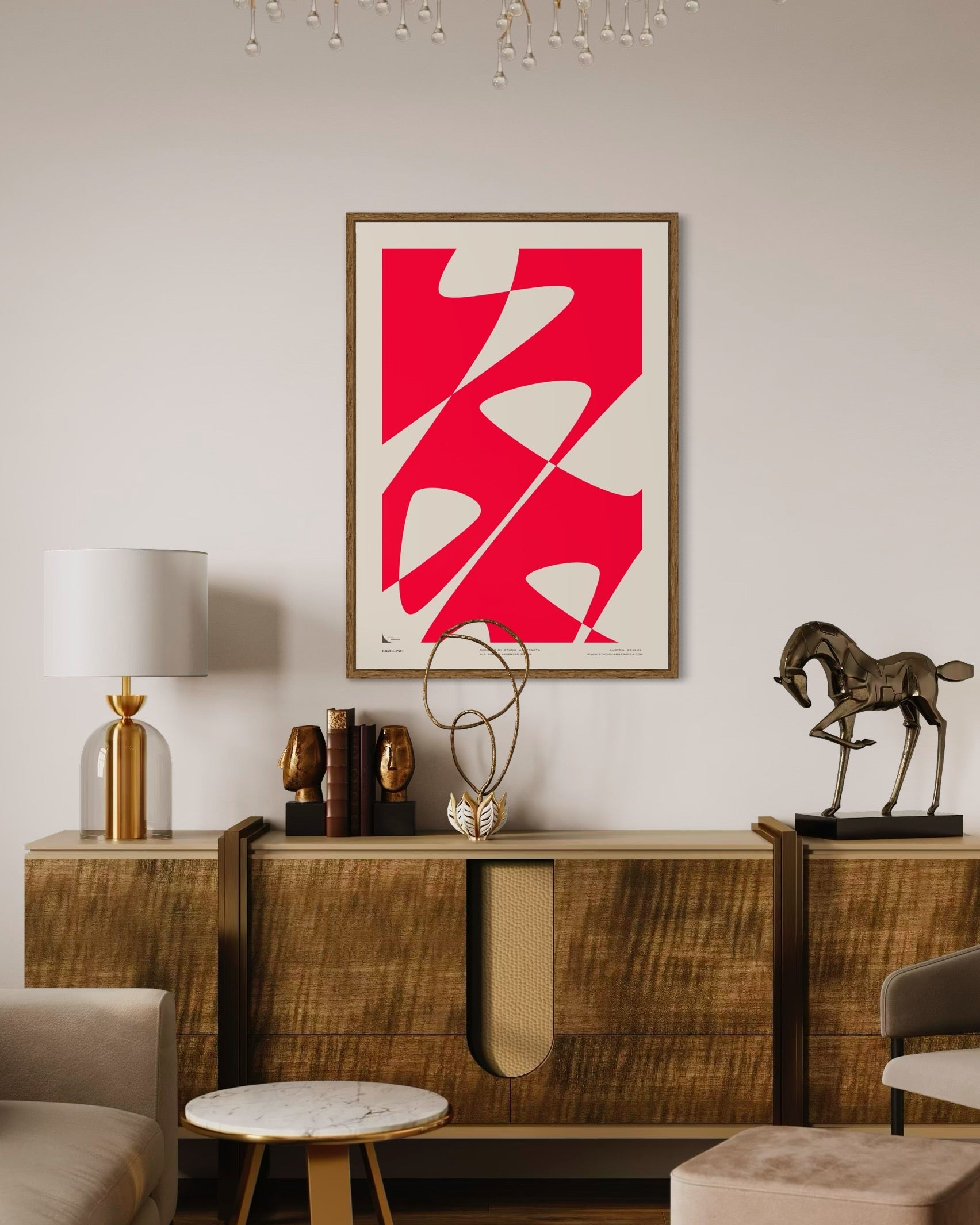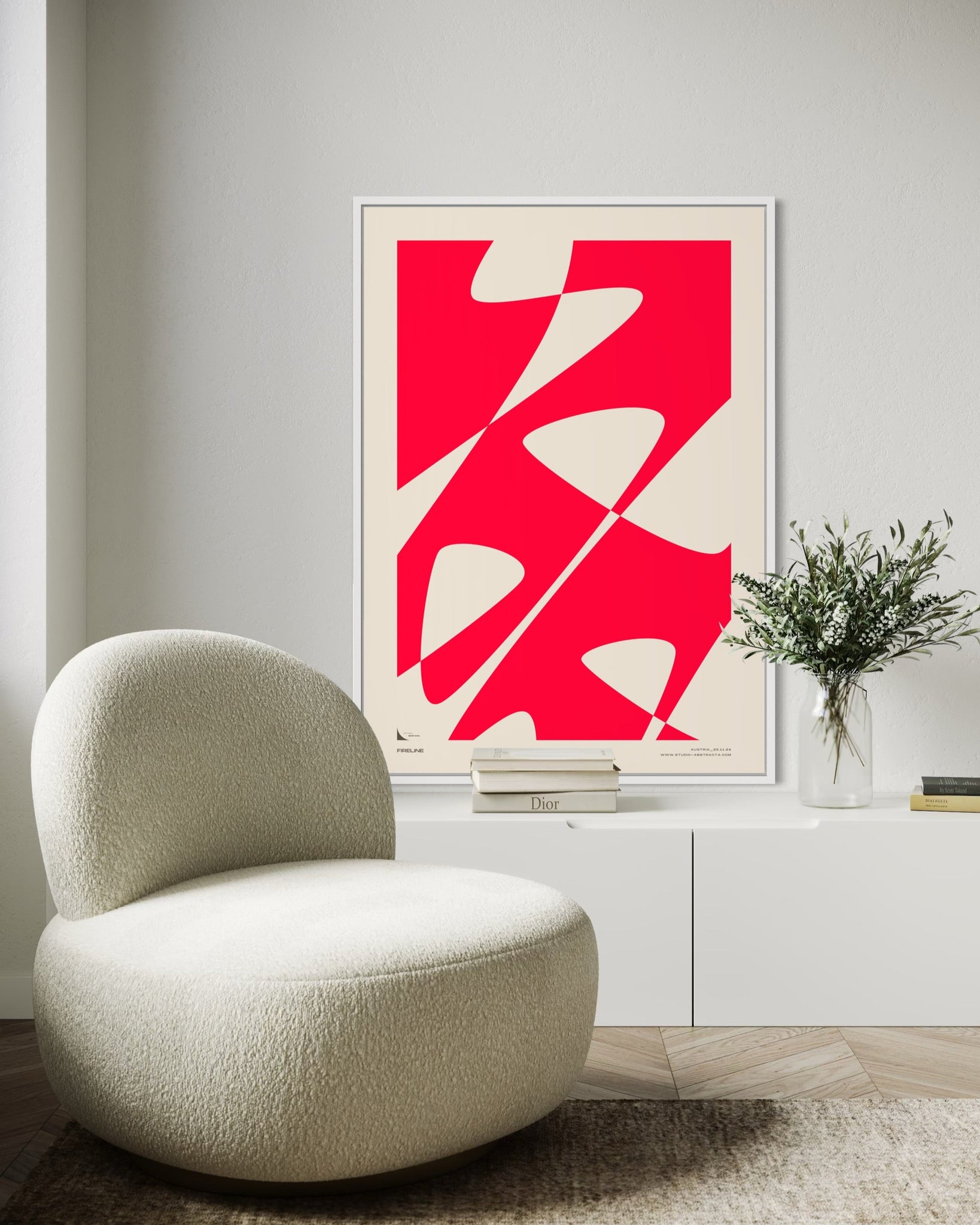 FIRELINE entfacht eine visuelle Flamme, die durch kräftige Rot- und Grautöne in klaren geometrischen Linien und Formen kanalisiert wird. Die dynamische Energie des Werkes wird durch die präzise Ausrichtung der Elemente verstärkt, wodurch eine Spannung zwischen Intensität und Ruhe entsteht.