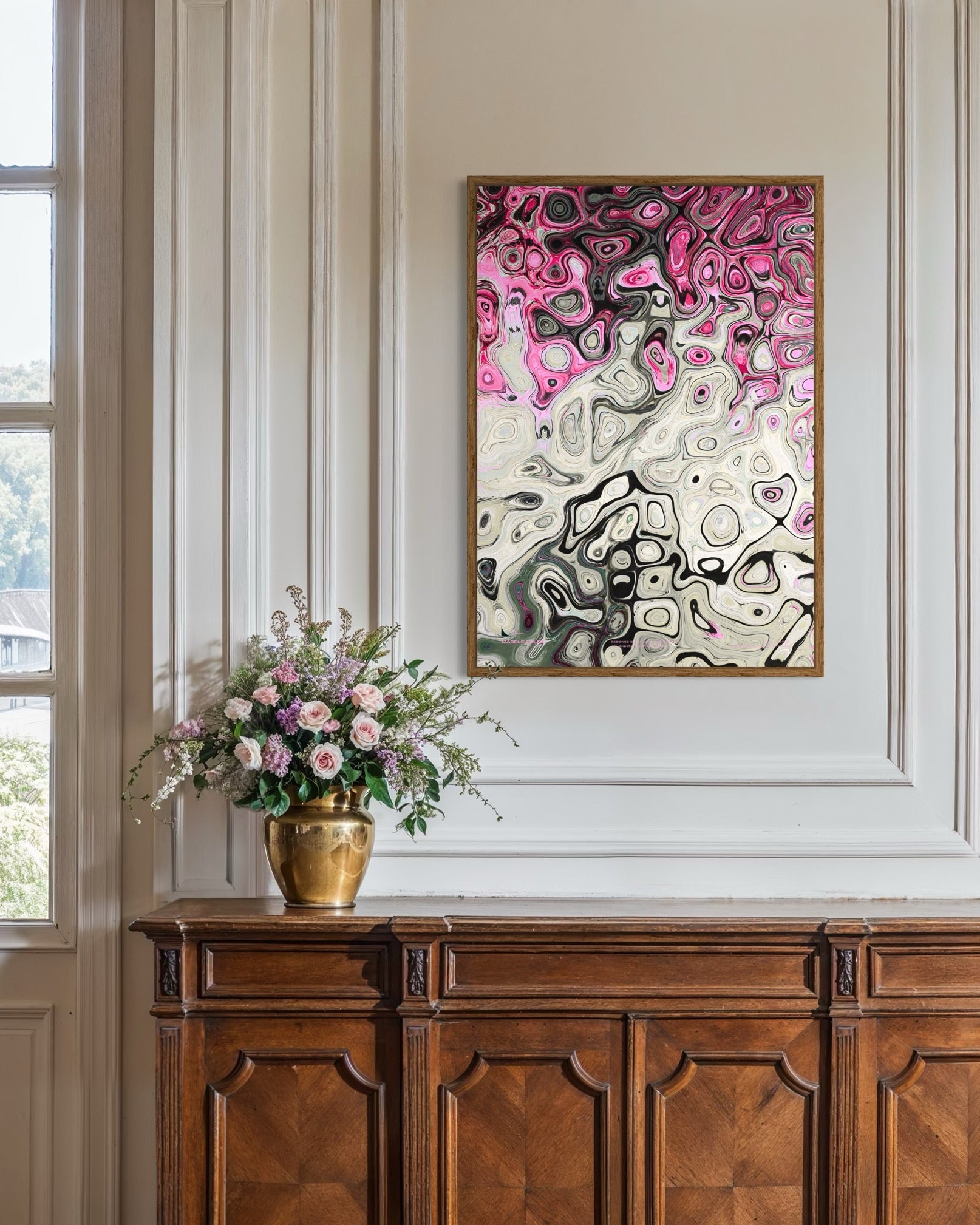 Marble Pulse reveals a gentle tremor within a marbled terrain. Organic eddies cohere into cells, paths, and islands—as if mapping currents of memory and encounter. Between calm planes and beating cores a rhythm emerges, at once geological and human. The work invites viewers to sense motions beneath the surface and to read strata of time.