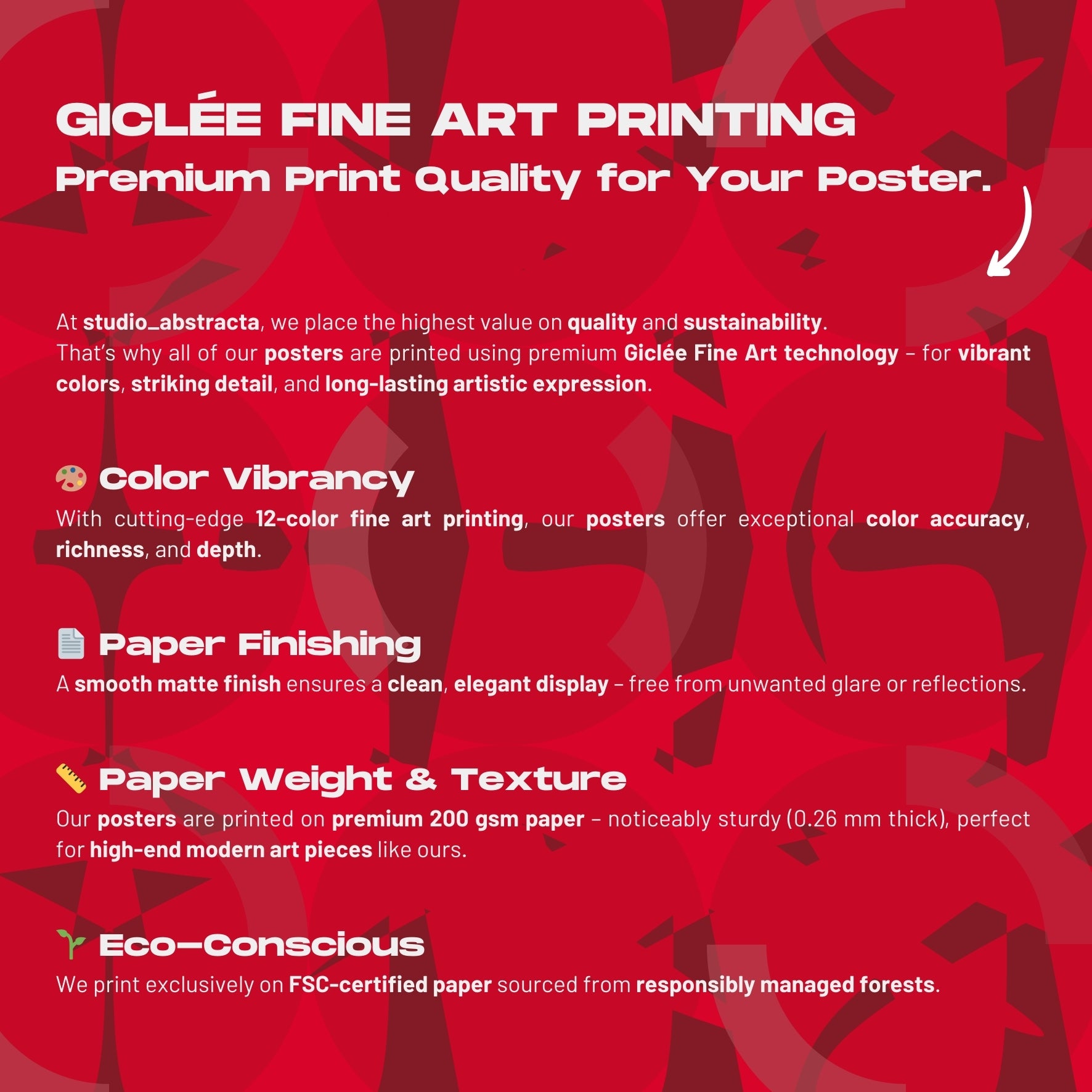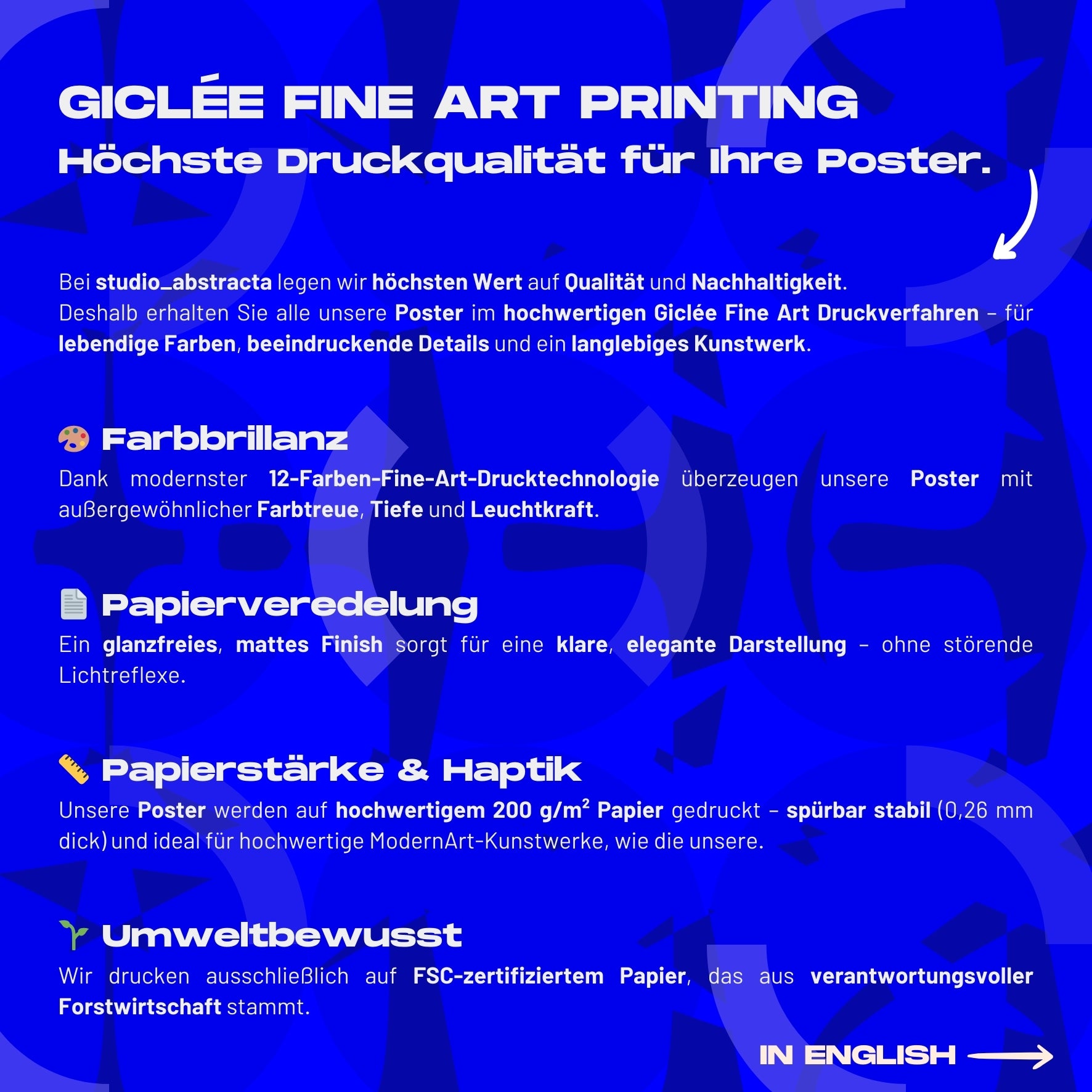 Die Werke/Poster, die du auf den Bildern siehst, sind wahrheitsgetreu dargestellt, ohne Filter oder dergleichen. Wir garantieren, dass du das Werk in super Qualität erhältst. Daher bitten wir dich vor der Bestellung bedacht vorzugehen.